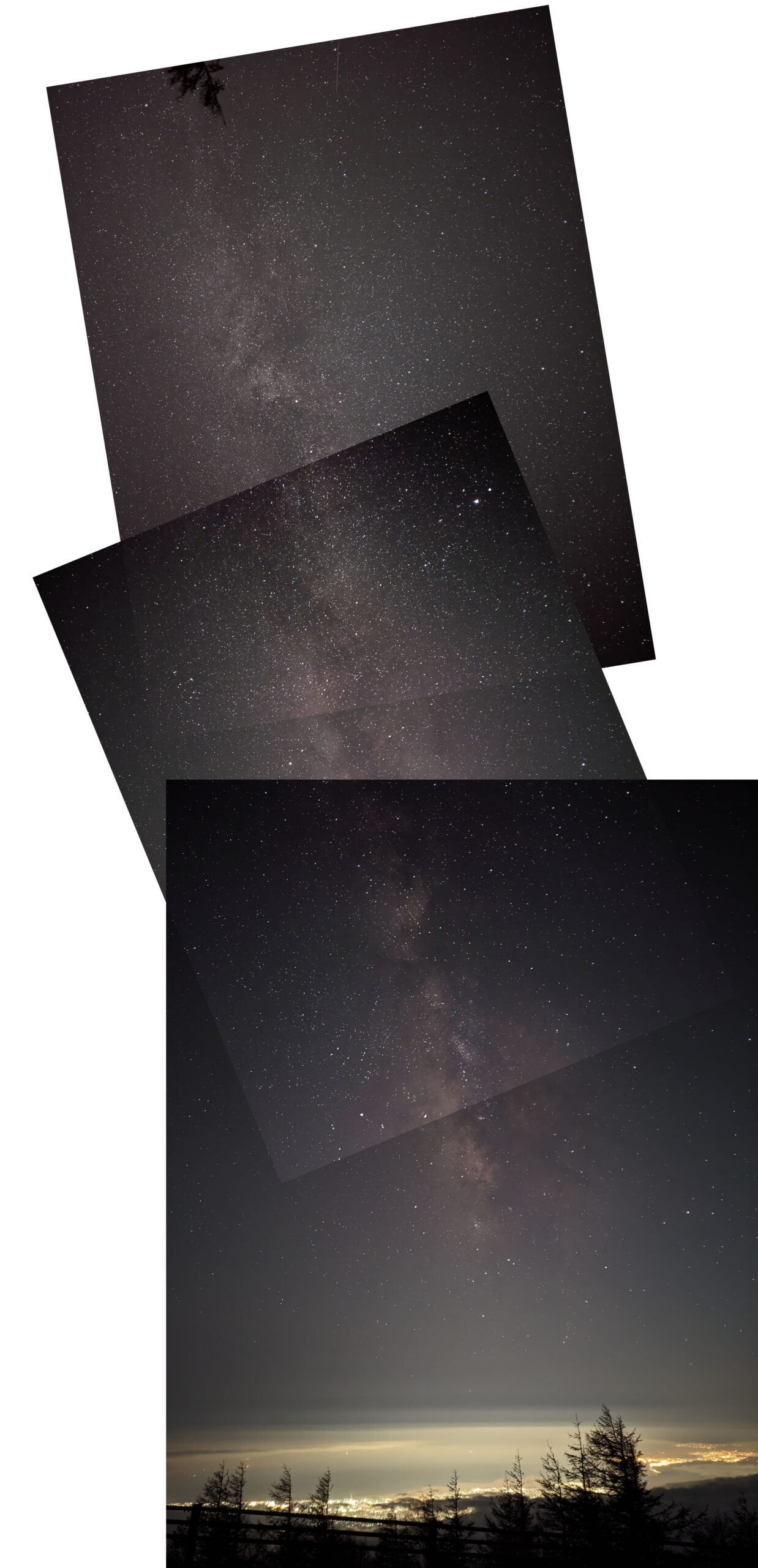 すると天体撮影モードの闇が(汗 バグなのか仕様なのかよくわかんないけれど、小口径レンズならあるあるでしょうか。繋ぎ合わせてる最中、試行錯誤するものの周辺部がかなり歪んでいるので困難(広角になるほど周辺部の歪みでスタックが難しいのだろうと妥協)。