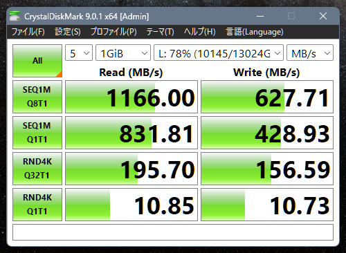 メモリ利用状況で「キャッシュ」確保された容量分はリードライトキャッシュ? になるかと思ったが、ベンチマーク結果からはそうでもないらしい(下画像)。M.2 NVMe増設するかどうかは検討中。。